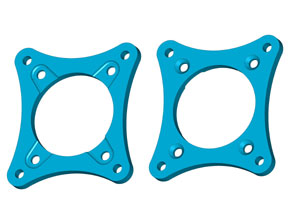 While we were at it we thought we would make the entire mounting system more robust and correctly aligned. Everything is machined to lock together with all mating surfaces parallel and true. This is the best way to keep things tight in a high vibration environment. We have two mount plates, one with no thrust offset and one with two degrees of thrust offset.