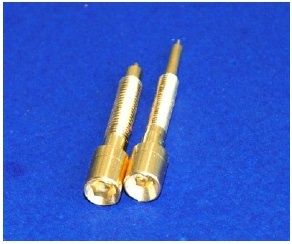 We are offering mixture adjustment screws for the Walbro WJ-71-1 carburetor. These will work on the DA 85, 100 and 120. The Walbro WB-27 is used on the DA 150 and 170 and we have mixture screws for these as well. Our latest addition is mixture screws for the Walbro HDA-22 which is used on the DA-60. They feature an Allen head recess rather then the standard screw driver slot. This makes it much easier to adjust the mixture, especially if you are doing it through a hole in the side of the cowling. There is a 45 degree taper leading into the allen recess as well. The Allen recess also allows up to 35 degrees of angularity so you don't have to be square onto the needle. The adjustment screws are pictured at bottom right.