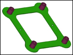The spinner alignment fixture is shown in gold, the HD Mount is in blue, the stand offs are gray, and the firewall plate is green.